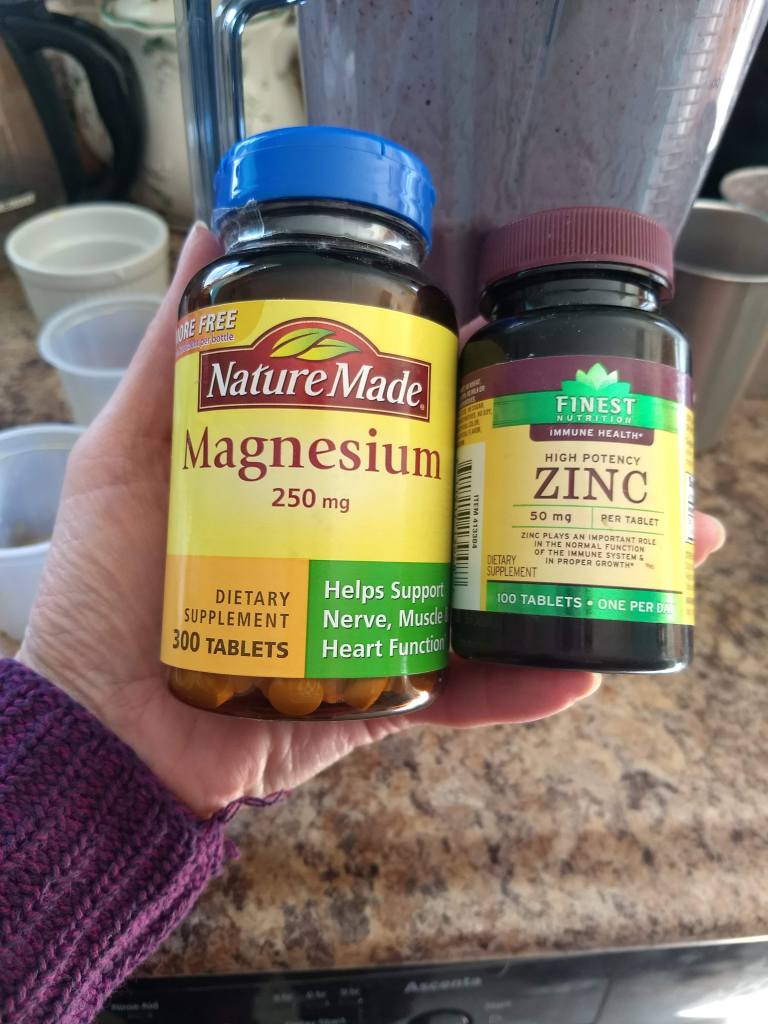 I add in Zinc and Magnesium because the pills are too big for the kids to take and one thing we all have to take out of this mess is that there is nothing more important than a healthy immune system. I just toss the pills in and chop them up. This could be our secret.